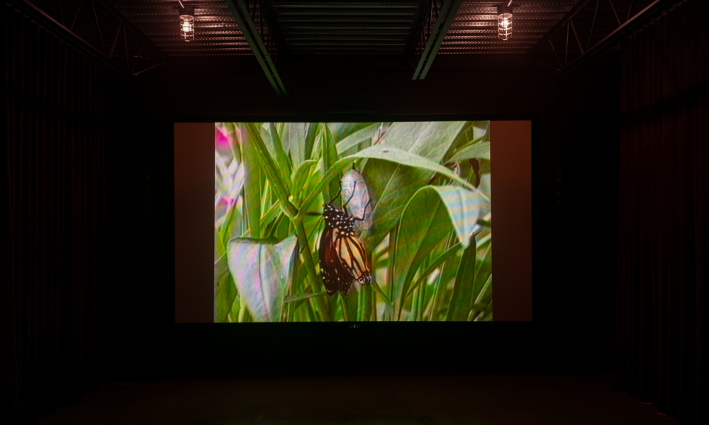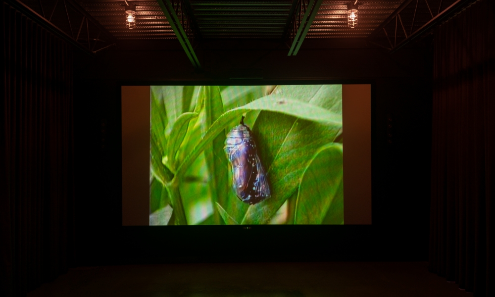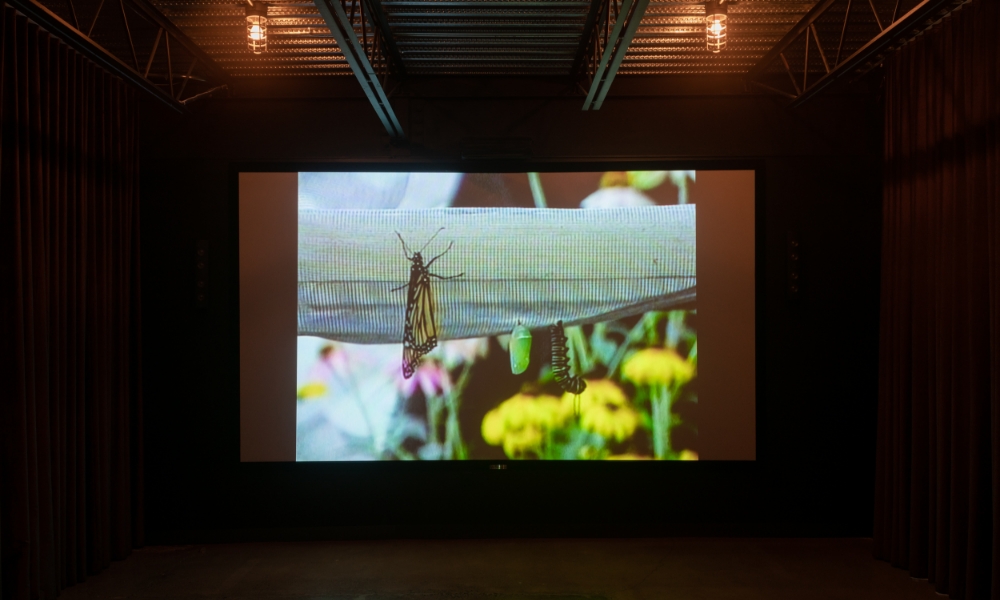 Fourth in a series of installations produced over the past ten years, this exhibit is a simple and direct presentation of the passive defense of ecologies by taking viewers into the life and birth of a butterfly.